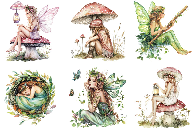 Transform your DIY projects with this charming collection of woodland fairy illustrations, ideal for invitations, scrapbooking, and more.