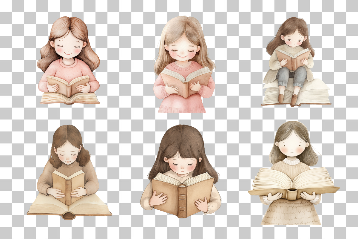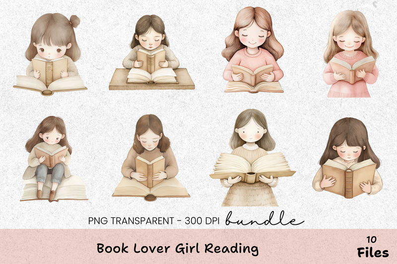 Book Lover Girl Reading Clipart Bundle