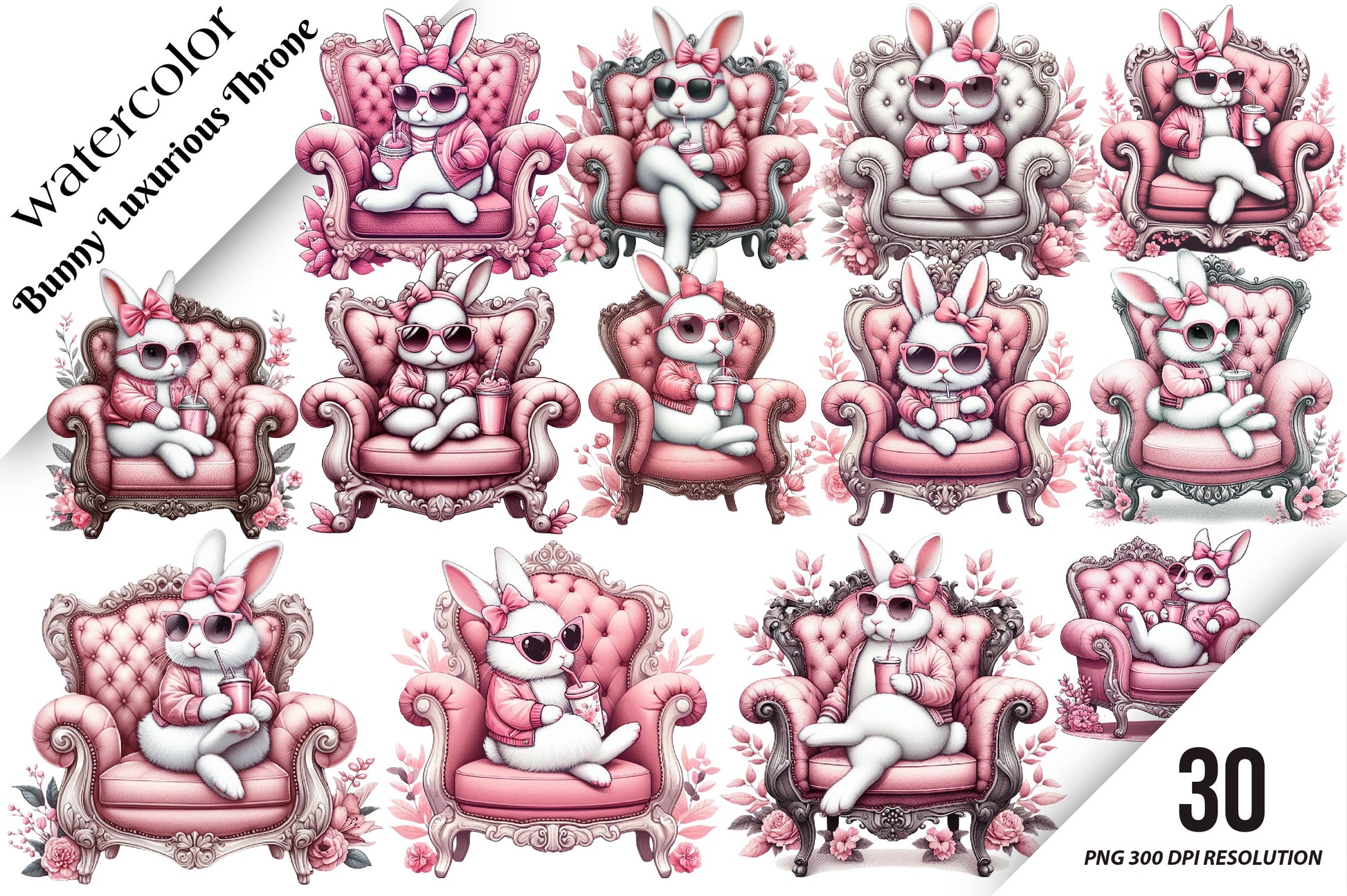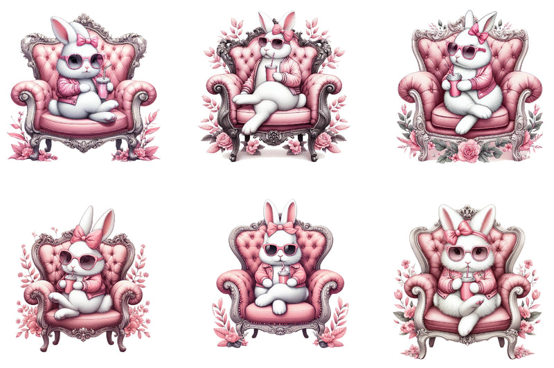 Discover the charm of the Bunny Luxurious Throne Clipart Bundle, offering a unique blend of elegance and whimsy for your next creative endeavor.