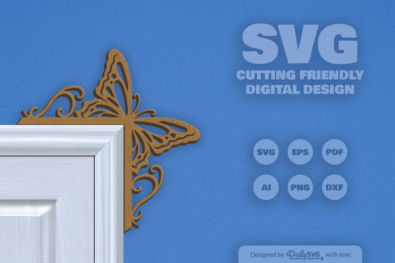 Enhance your projects with the Butterfly Door Corner Laser Cut Clipart Design, featuring intricate butterfly patterns perfect for elegant home decor and creative crafts.