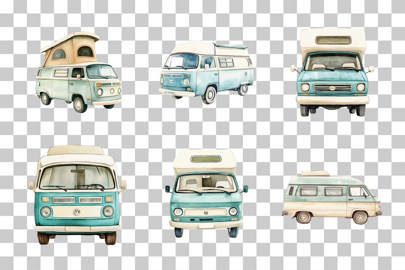 Camper Van Beach Clipart Bundle