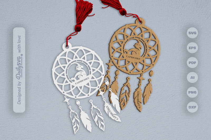 Capture celestial charm with the Capricorn Dream Catcher Set SVG Bundle. Perfect for crafting mystical home decor, this collection features intricate designs inspired by the Capricorn zodiac, ideal for personalized gifts and creative projects.