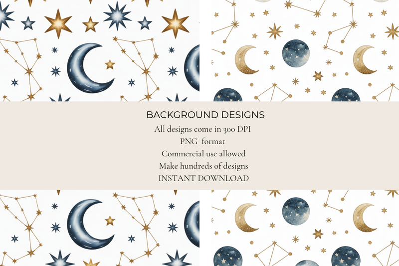Transform your projects with Celestial Gold & Navy Seamless Papers, featuring luxurious celestial patterns perfect for elegant invitations, sophisticated scrapbooking, and stunning digital designs. Elevate your creative endeavors with these versatile, high-quality papers that blend opulent gold with deep navy hues, ideal for weddings, parties, and artistic crafts. Discover the magic of celestial elegance today!
