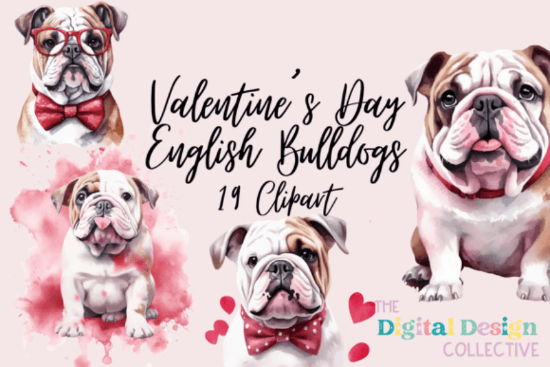 Charming Valentine's Day English Bulldogs Clipart Bundle