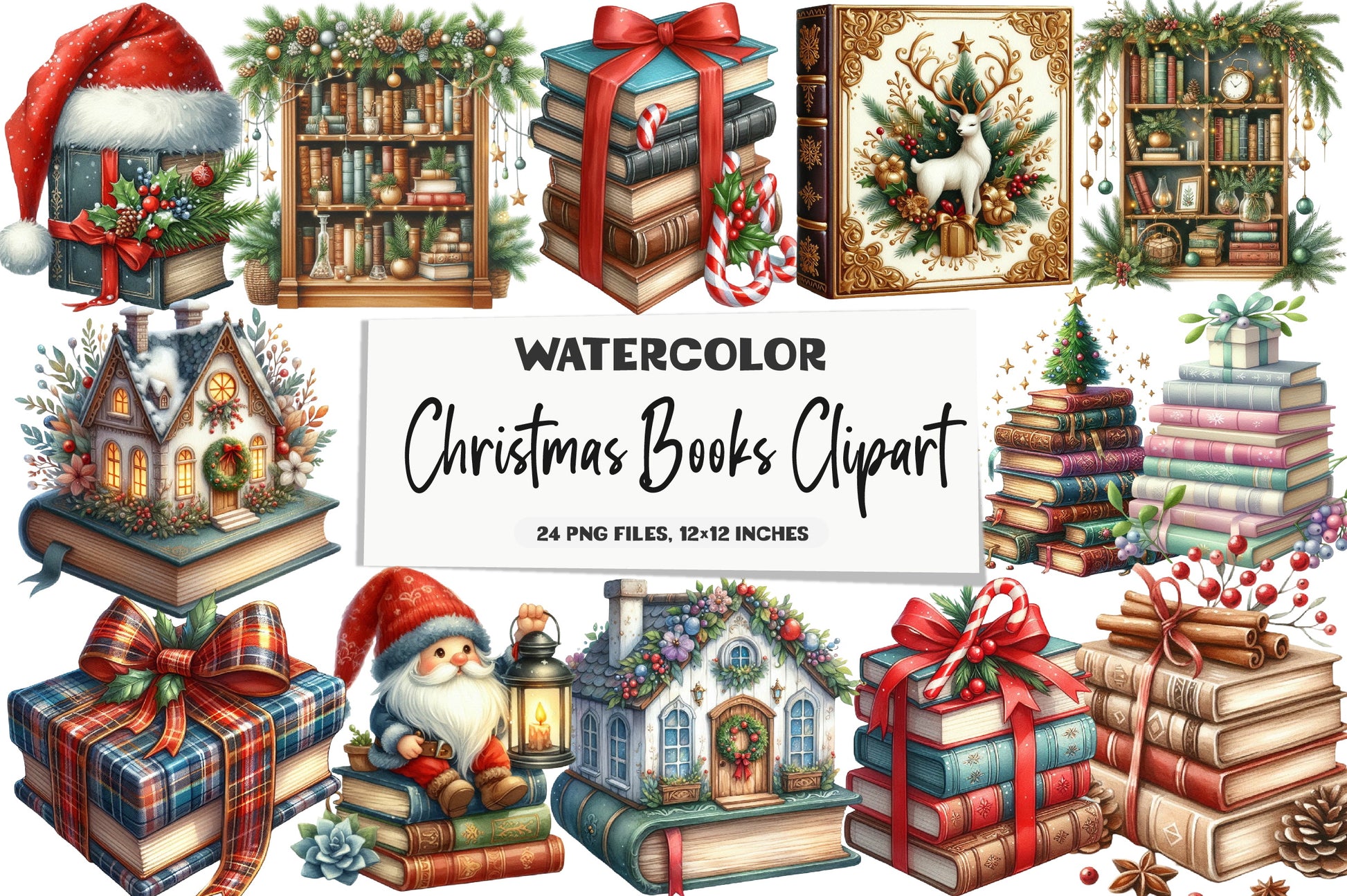 Capture the spirit of the season with our diverse Christmas Books Clipart Bundle, offering a variety of charming and whimsical designs.