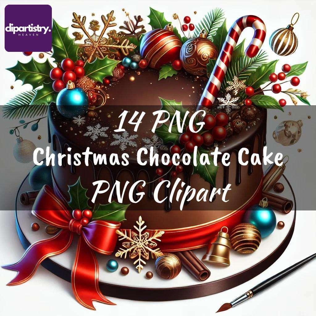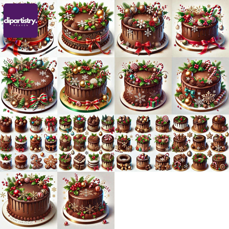 Indulge festively with this Christmas Chocolate Cake Clipart set, featuring rich cake designs, ideal for holiday projects.