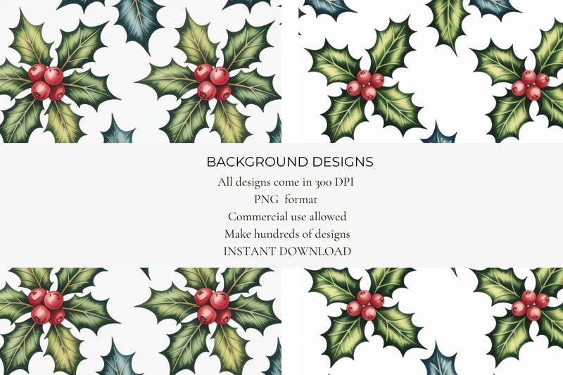 Bring your holiday visions to life with our stunning Christmas Holly Seamless Papers, perfect for all your creative needs.