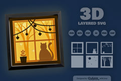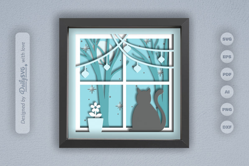 Christmas Night Cat Papercut SVG Bundle