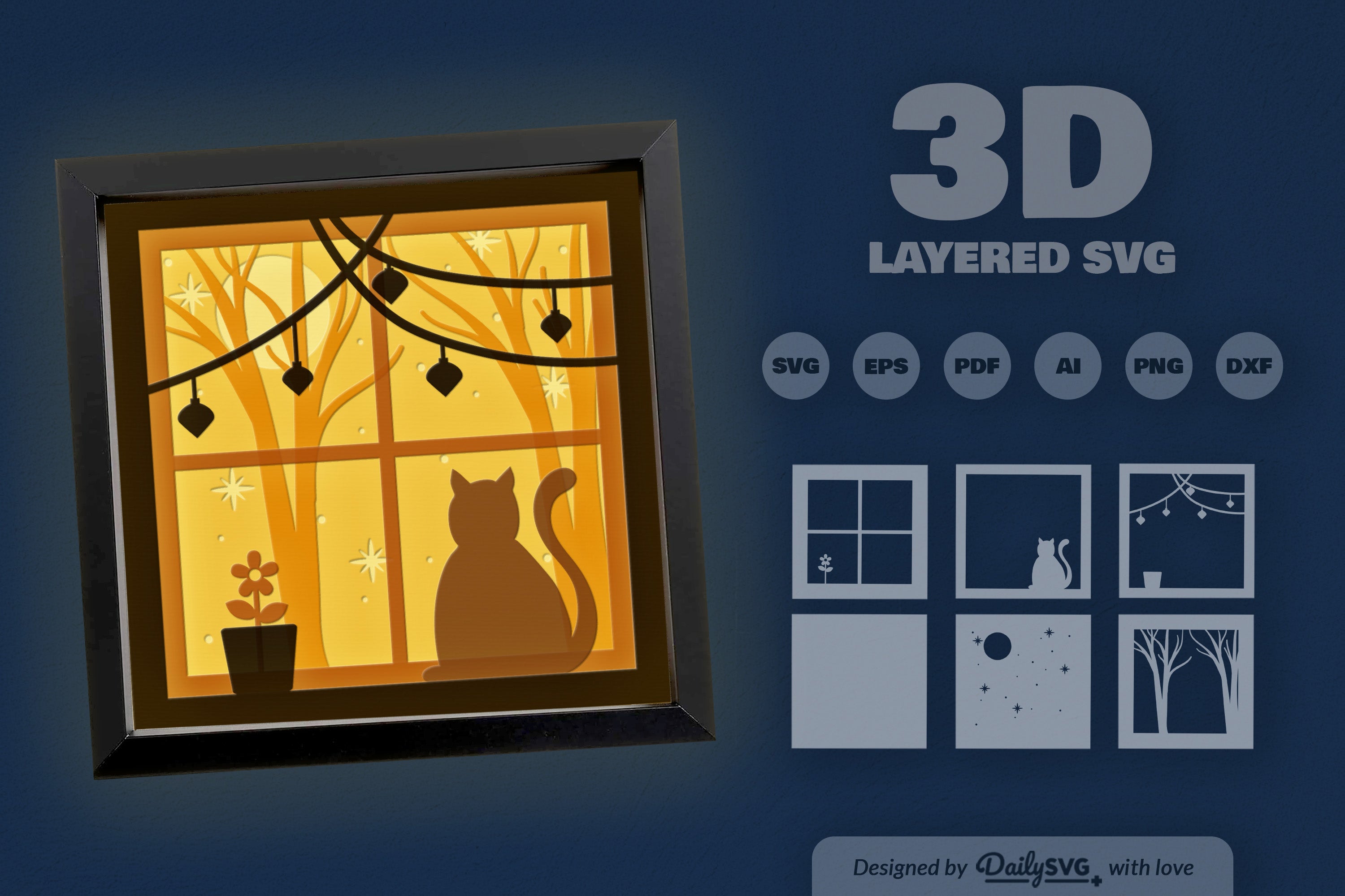 Illuminate your holiday crafts with the Christmas Night Cat Papercut SVG Bundle. Featuring intricate cat designs set against a festive backdrop, this bundle is perfect for creating enchanting decorations, cards, and gifts. Ideal for cat lovers and holiday enthusiasts, these SVG files bring a touch of magic to your seasonal projects.