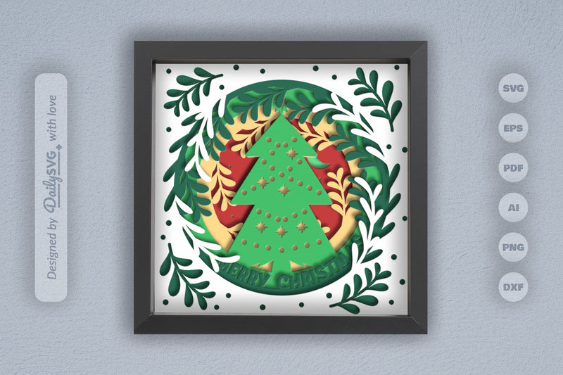 Christmas Tree Papercut Shadow Box SVG Bundle