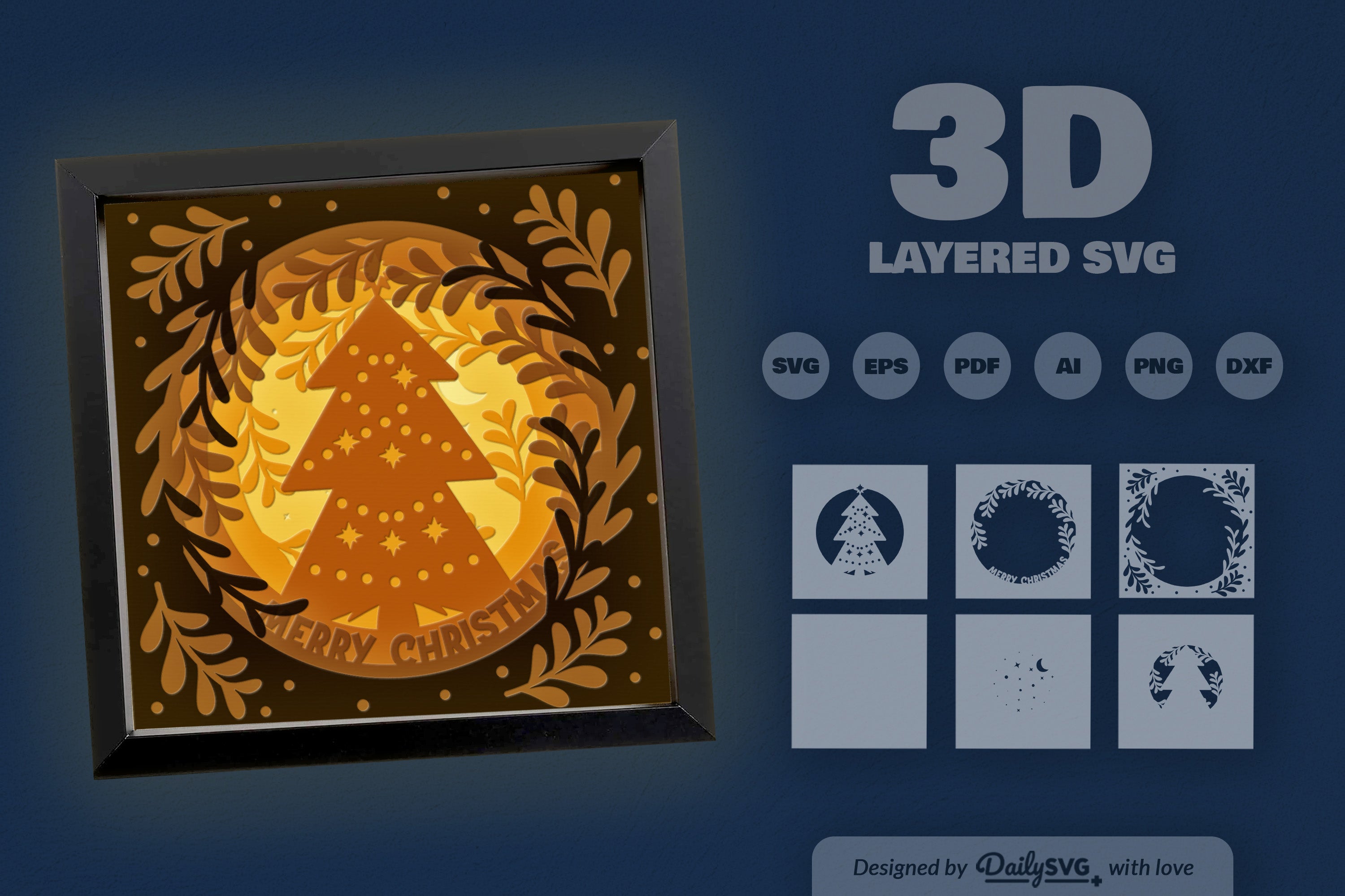 Illuminate your holiday decor with the Christmas Tree Papercut Shadow Box SVG Bundle. Perfect for crafting festive shadow boxes, this bundle features intricate Christmas tree designs that bring a magical touch to your seasonal projects. Ideal for DIY enthusiasts and crafters looking to create unique holiday decorations.