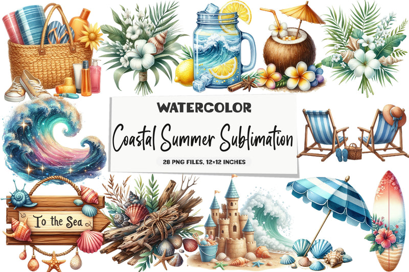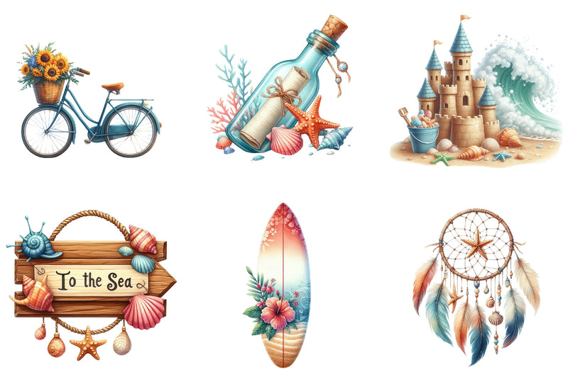 Transform your designs with the Coastal Summer Clipart Bundle, a must-have for crafting beautiful summer-themed projects, from greeting cards to digital art.
