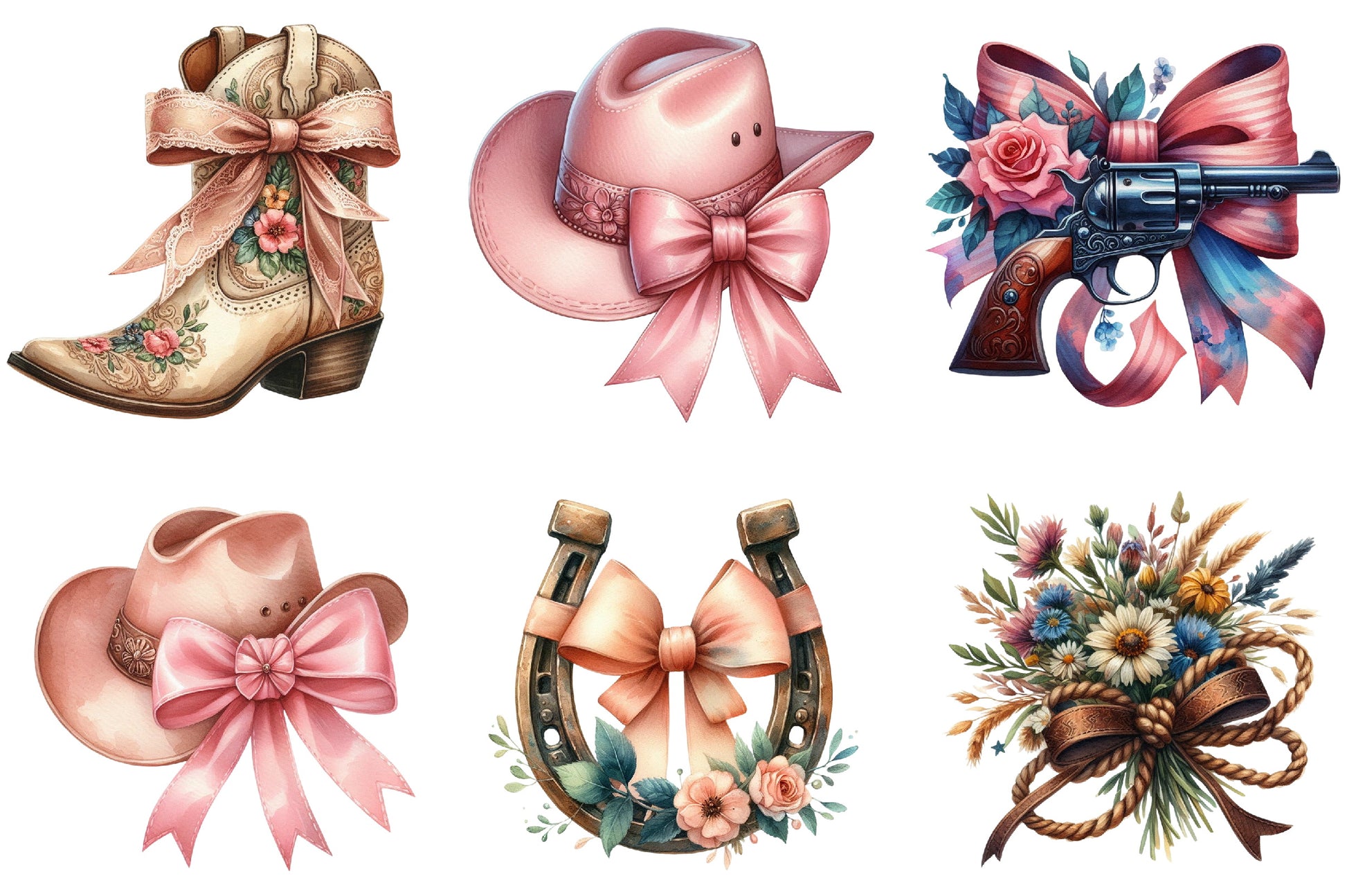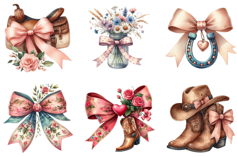 Coquette Cowgirl Bow Clipart Bundle