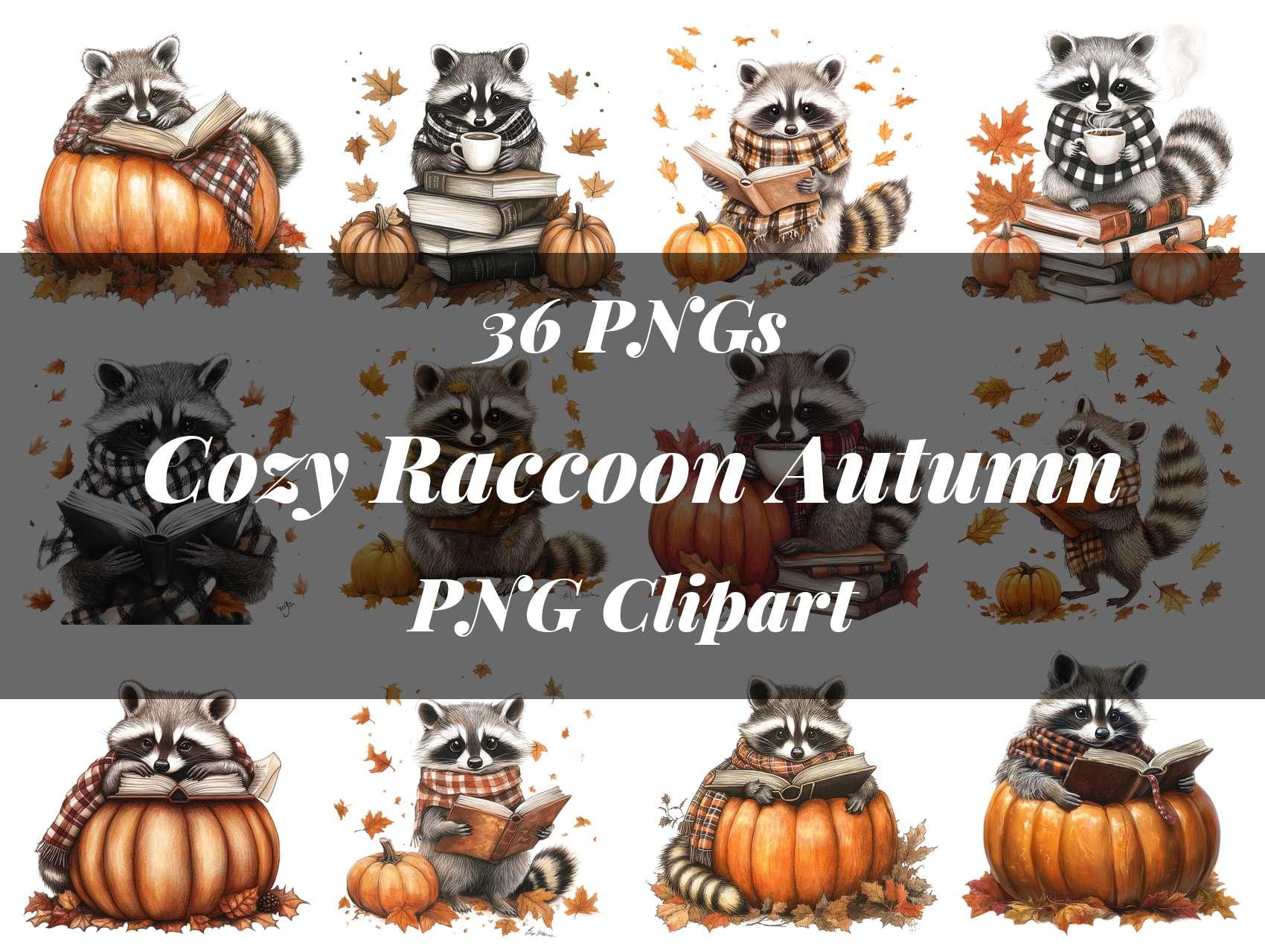 Cozy Raccoon Autumn Clipart
