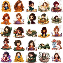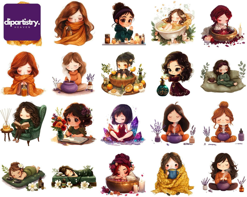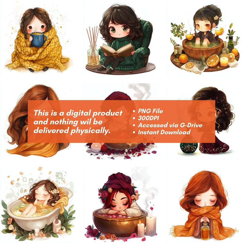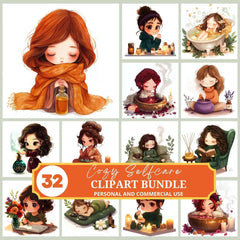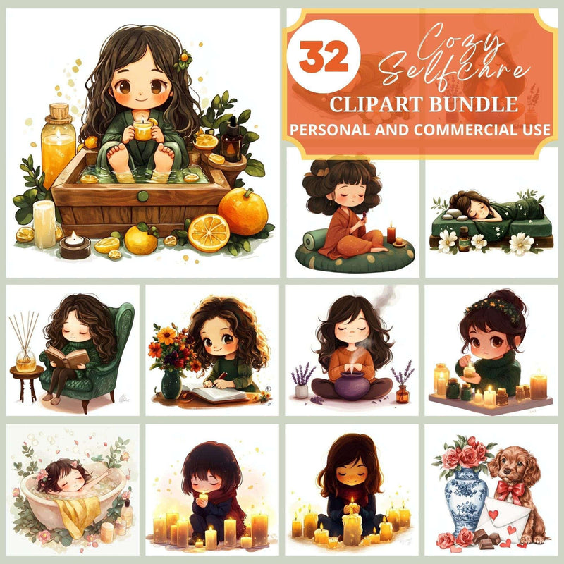 Pamper yourself with this Cozy Selfcare Clipart set, featuring relaxing designs, perfect for wellness crafts.