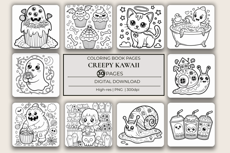 Unleash your creativity with the Creepy Kawaii Coloring Book, featuring a unique blend of cute and spooky designs perfect for all ages. Dive into a world of adorable monsters and charmingly eerie characters, ideal for fans of quirky art. This coloring book offers hours of fun and relaxation, making it a perfect gift for Halloween enthusiasts and kawaii lovers alike. Transform your coloring experience with these enchanting illustrations that promise to captivate and inspire.