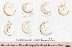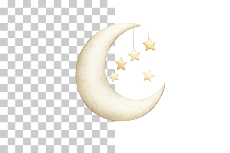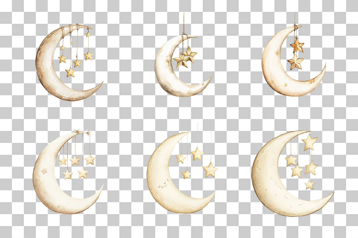 Illuminate your projects with the Crescent Moon with Hanging Stars Clipart Bundle. Perfect for celestial-themed crafts, this enchanting collection features stunning moon and star designs, ideal for invitations, nursery decor, and more. Elevate your creativity with these magical elements, perfect for adding a touch of whimsy to any project.