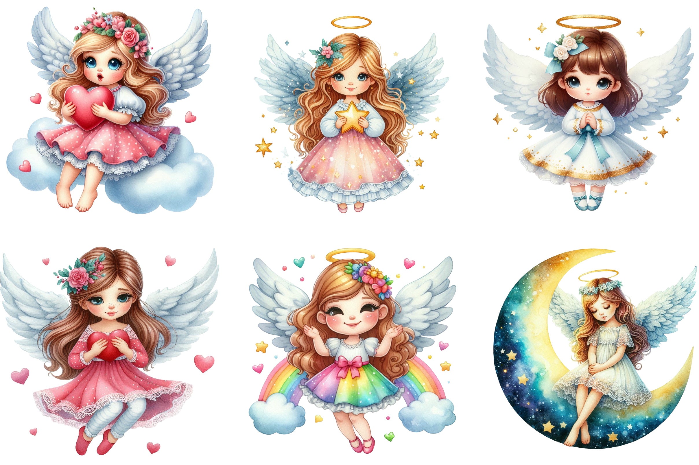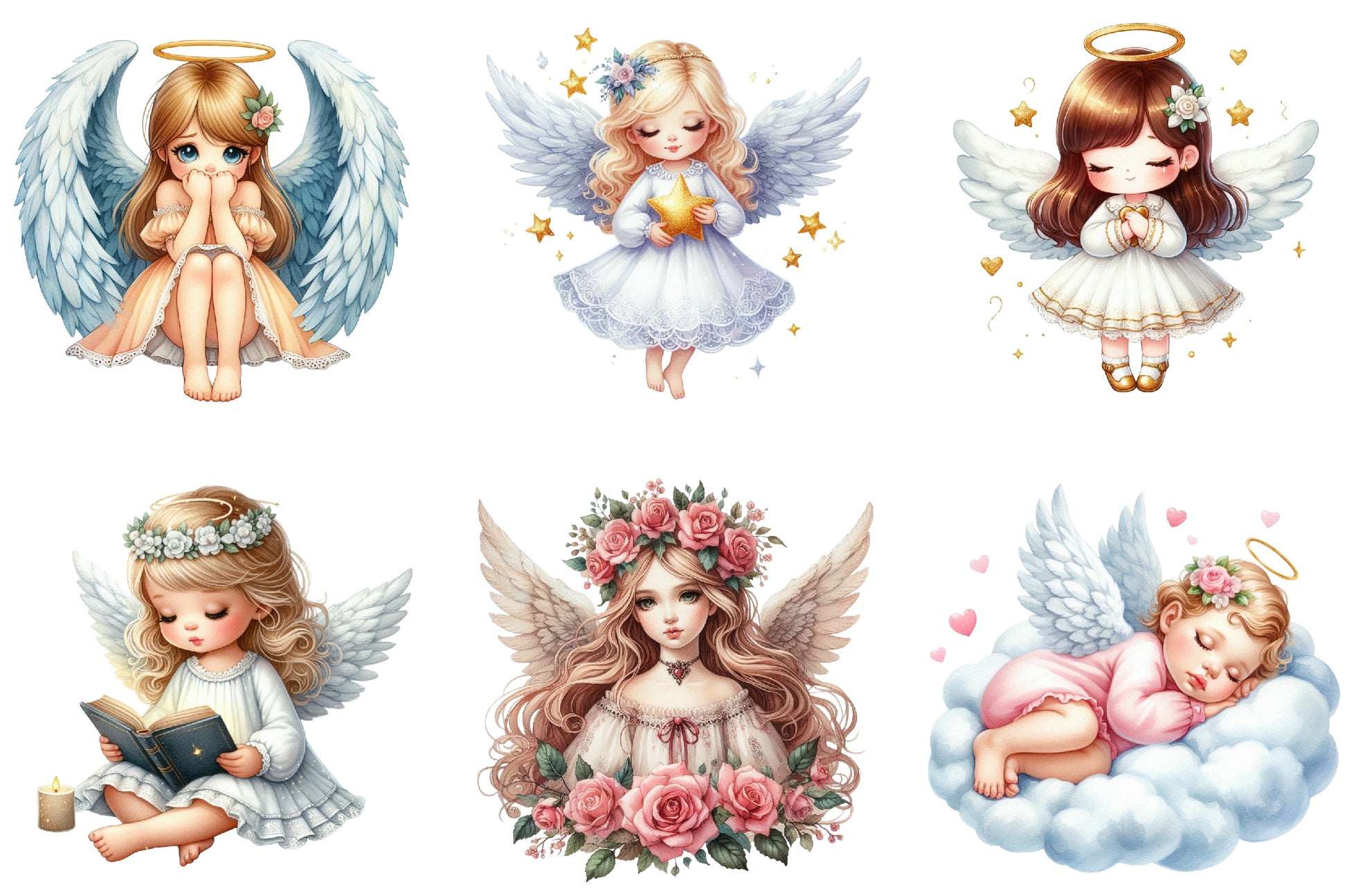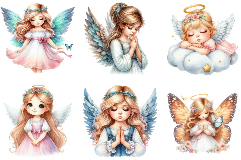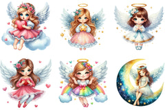 Unleash your creativity with this enchanting collection of angel girl illustrations, ideal for personalized gifts, scrapbooking, and digital art.