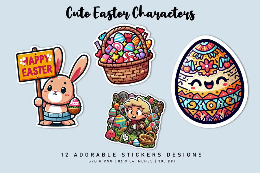 Delight in our Cute Easter Characters, featuring charming bunnies and chicks, perfect for festive crafts and joyful decorations.