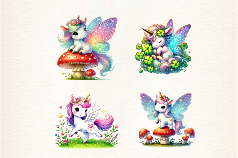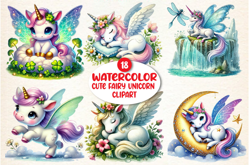 Unleash creativity with our Cute Fairy Unicorn Clipart Bundle, perfect for whimsical nursery projects and magical party invitations.