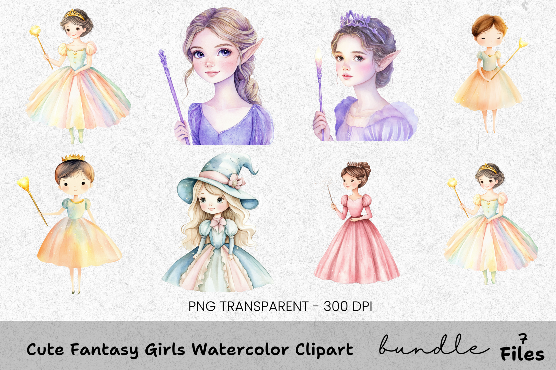 Unleash creativity with the Cute Fantasy Girls Clipart Bundle, showcasing charming and whimsical designs perfect for enchanting digital projects, scrapbooking, and personalized gifts.