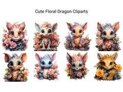 Bask in the enchanting beauty of our Cute Floral Dragon clip art. These whimsical digital illustrations depict dragons adorned with delicate flowers and lush foliage, perfect for adding a touch of botanical elegance and magical allure to your designs, whether for fantasy artwork, garden-themed decorations, or whimsical projects, capturing the timeless charm of floral dragons in delightful detail.