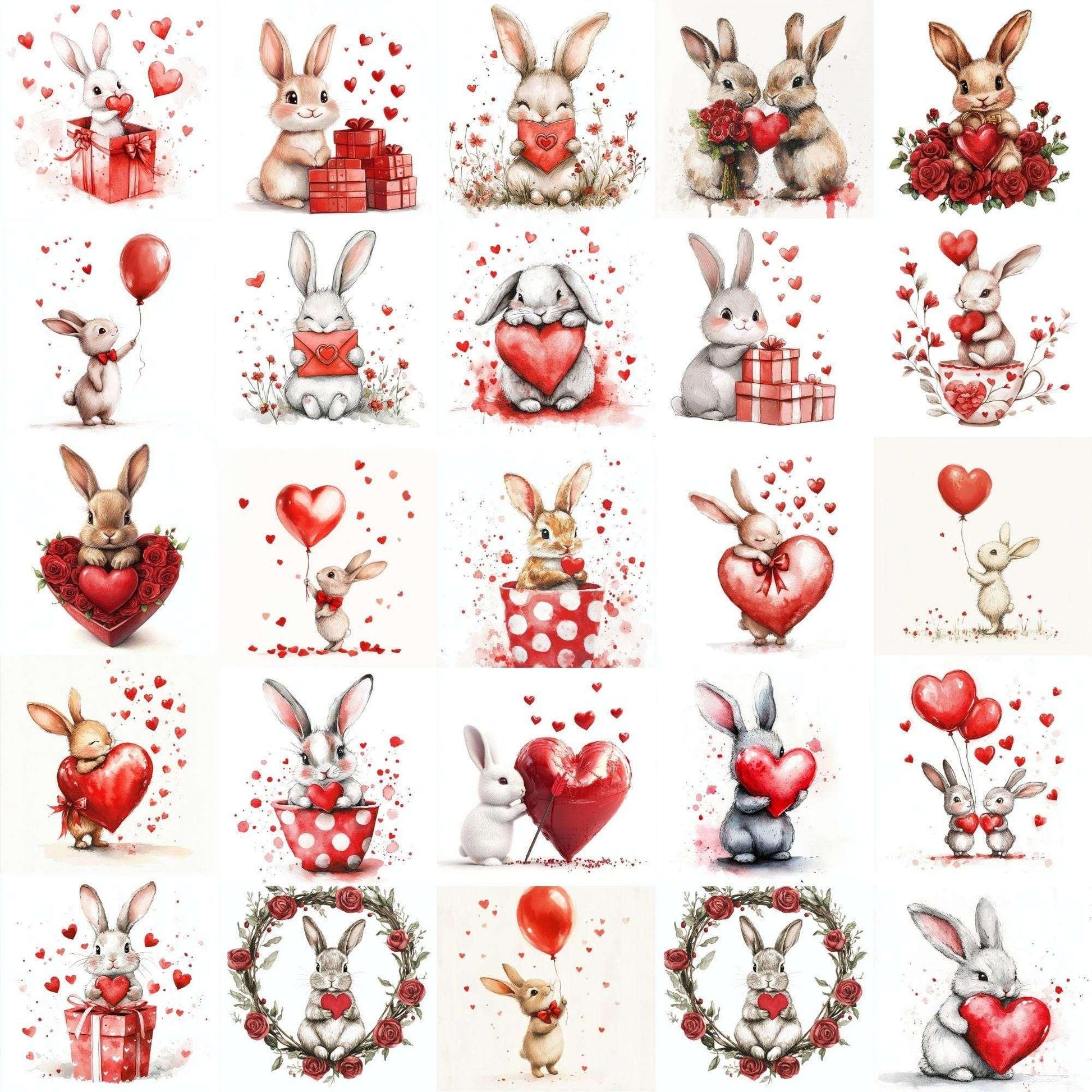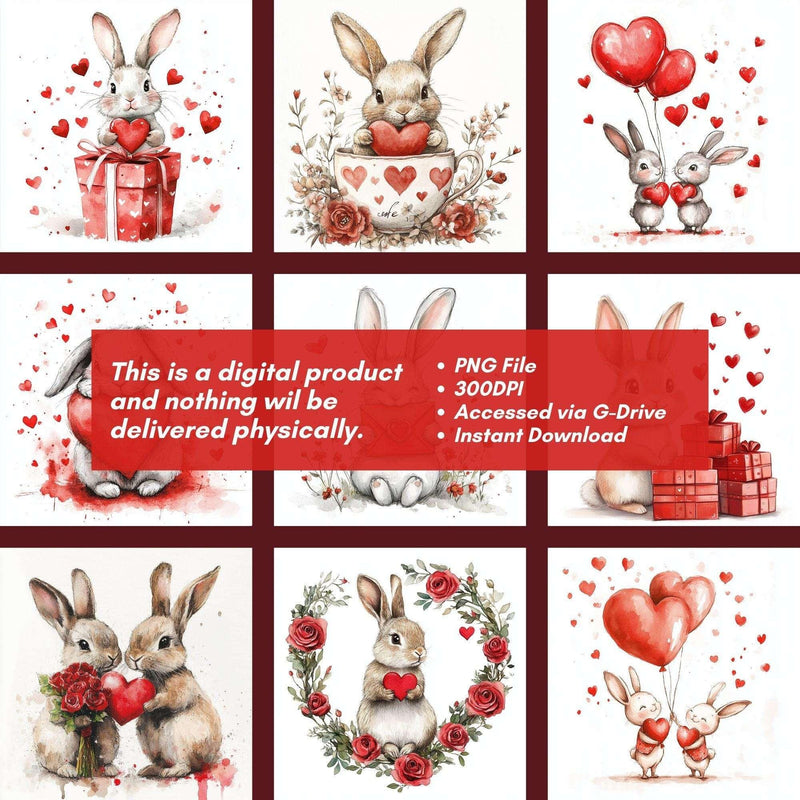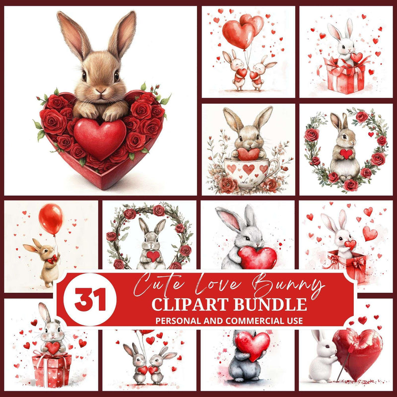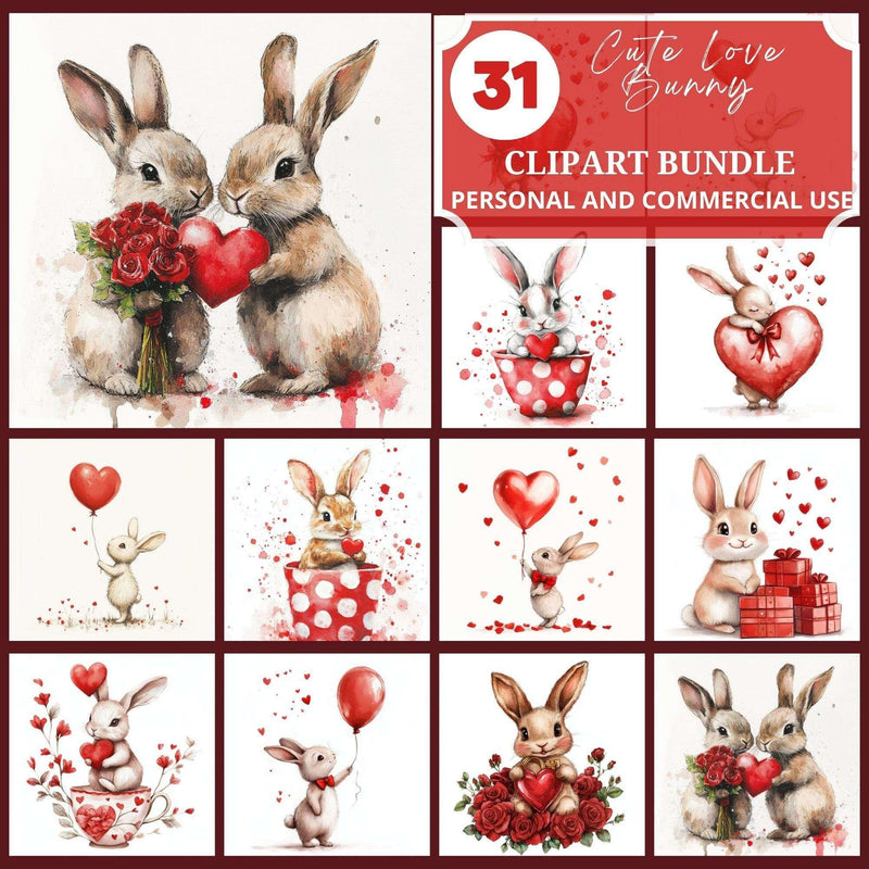 Hop into sweetness with this Cute Love Bunny Clipart set, featuring adorable bunny designs, perfect for lovable projects.