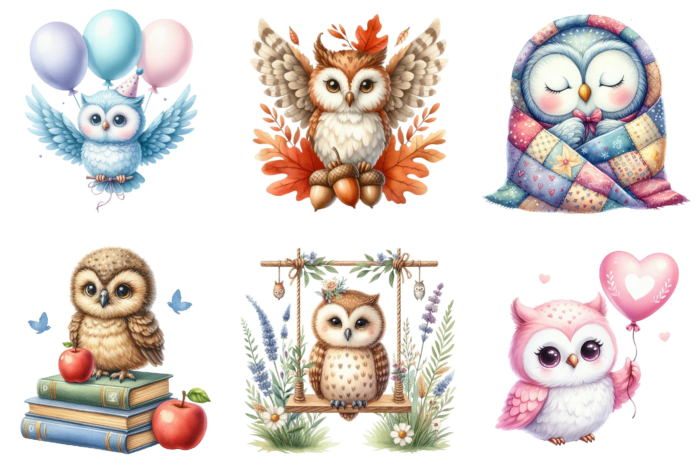 Discover the charm of our Cute Owl Clipart Bundle, featuring delightful owl designs perfect for whimsical nursery projects and creative crafts.
