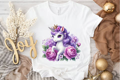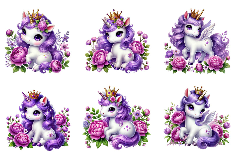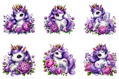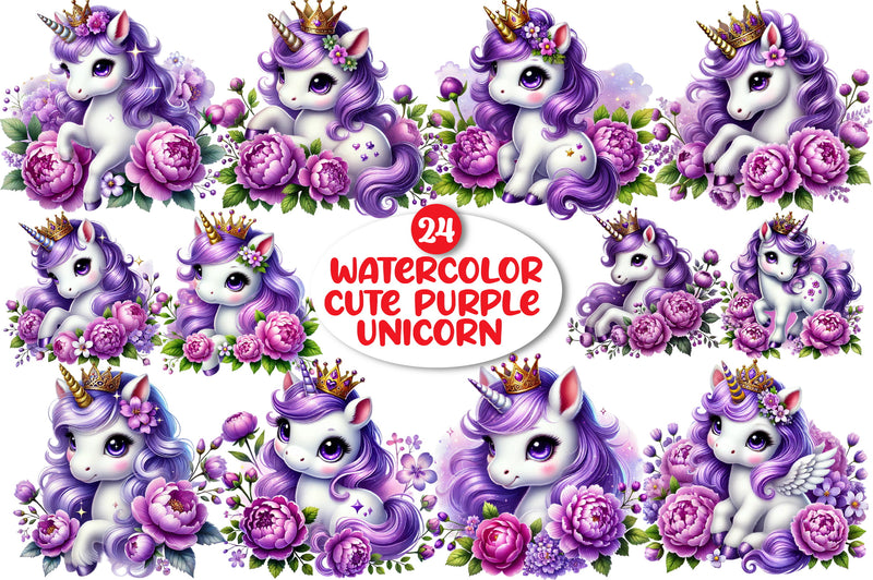Unleash creativity with our Cute Purple Unicorn Clipart Bundle, perfect for whimsical projects and magical nursery decor.