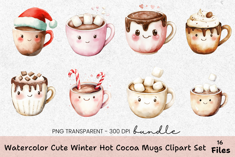 Cute Winter Hot Cocoa Mugs Set Wrap Bundle