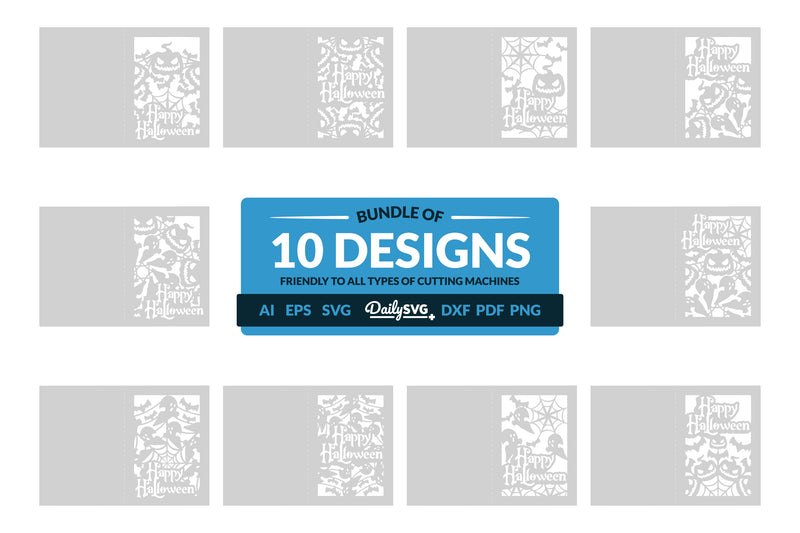 Spook up your crafts with our Daily SVG Bundles: Happy Halloween Greeting Card Clipart. Perfect for creating eerie yet charming Halloween cards, decorations, and more. Unleash your creativity with high-quality, easy-to-use designs that capture the spirit of Halloween.