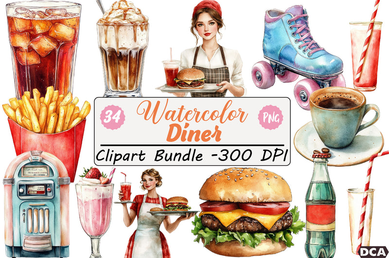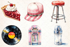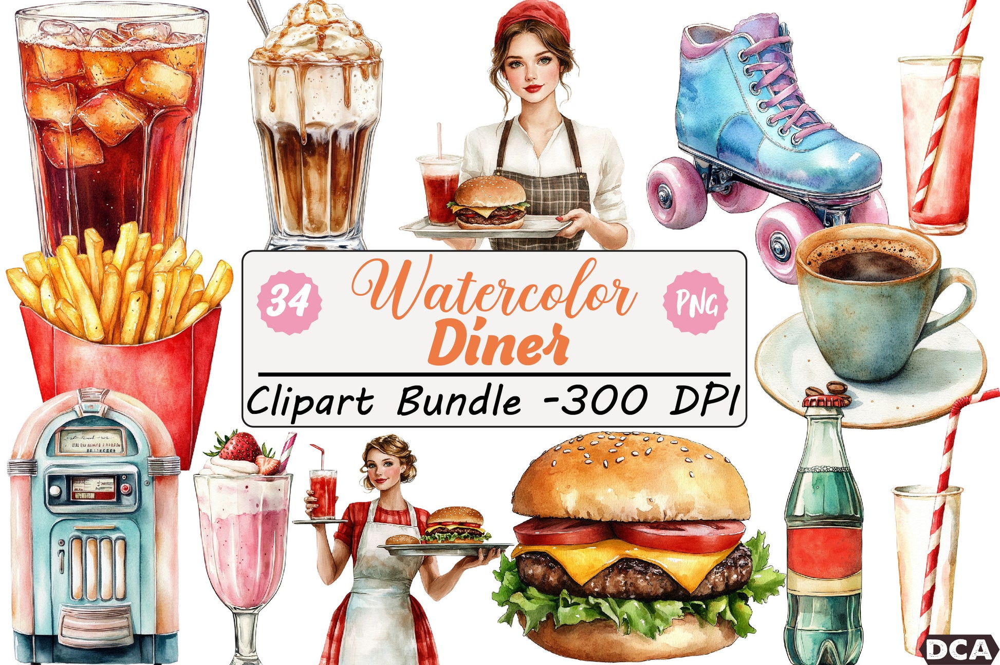 Unleash your creativity with our Diner Clipart Bundle, packed with nostalgic diner graphics to elevate your artistic projects and bring a touch of retro flair.