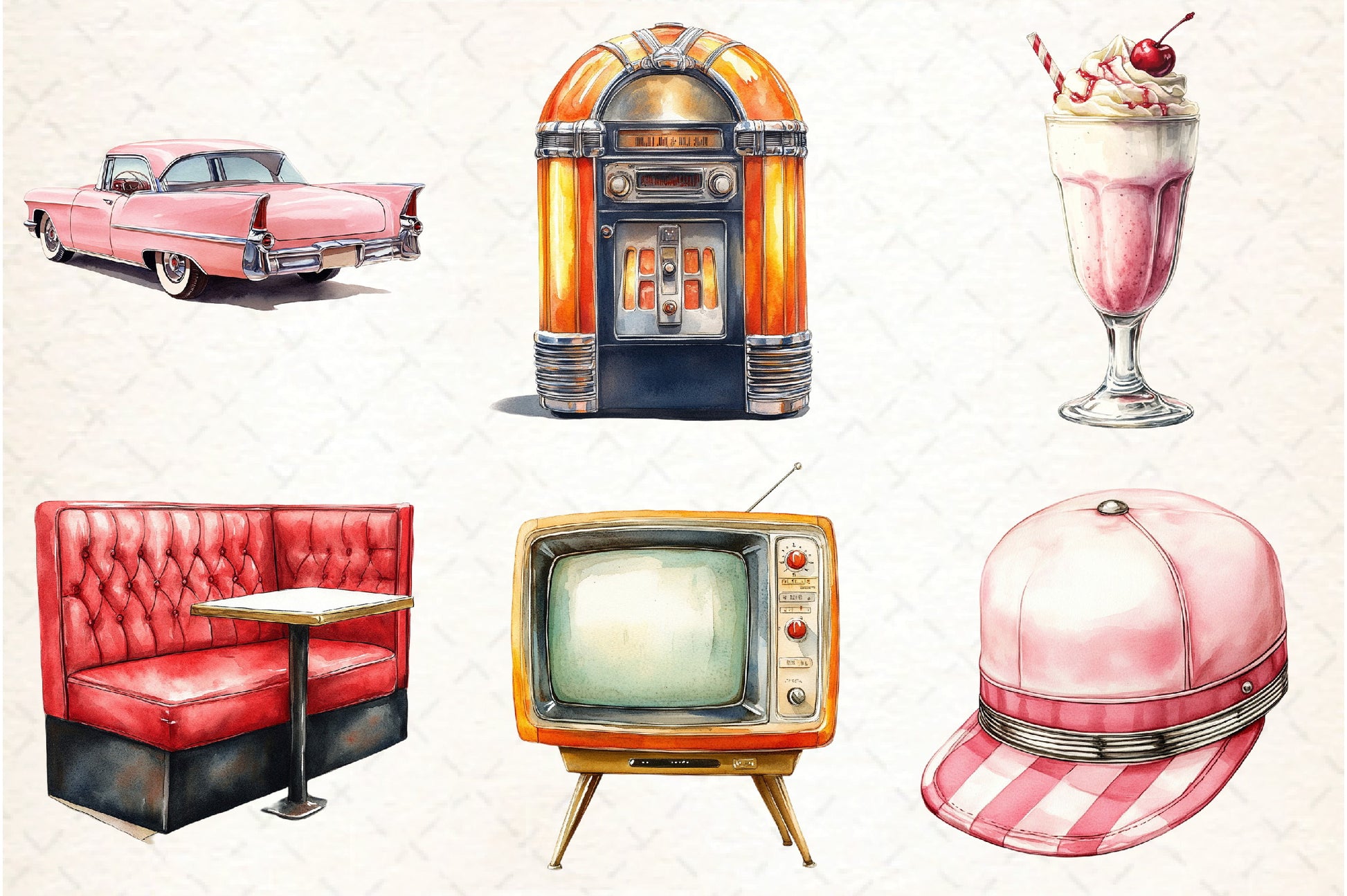Discover endless possibilities with the Diner Clipart Bundle, a must-have for anyone looking to add a vintage diner vibe to their creative endeavors.