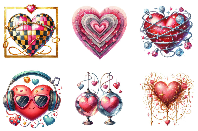 Ignite your creativity with the Disco Valentine Heart Clipart Bundle, featuring vibrant heart designs perfect for romantic projects and festive crafts. Ideal for digital scrapbooking, invitations, and personalized gifts, this collection adds a touch of love and sparkle to any creation. Unleash your artistic flair with these high-quality, versatile clipart images, designed to make your Valentine's Day projects truly unforgettable.
