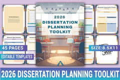 Unlock academic success with the Dissertation Planning Toolkit Planner, your ultimate guide to structured research and writing. Perfect for students aiming to streamline their dissertation process, this planner offers comprehensive templates, timelines, and goal-setting tools to keep you on track. Enhance productivity and reduce stress with this essential academic companion, designed to transform your dissertation journey into a manageable and rewarding experience.