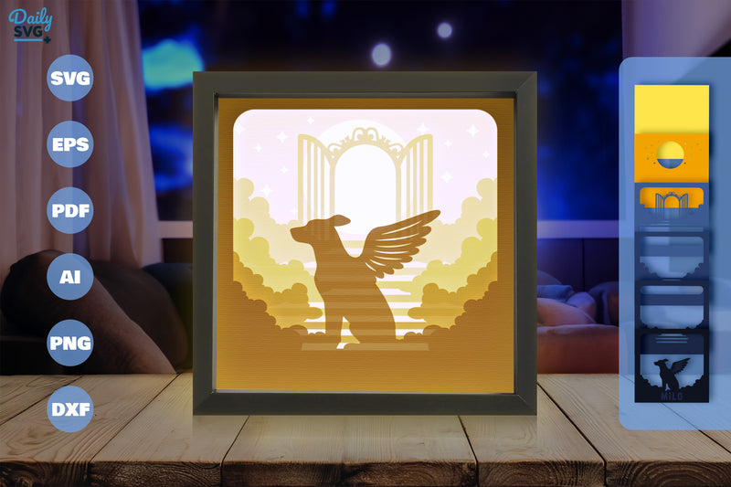 Honor your beloved pet with the Dog Memorial Papercut SVG Bundle: Heavenly Tribute. This collection features intricate designs perfect for heartfelt memorial crafts, ensuring a lasting tribute to your furry friend.
