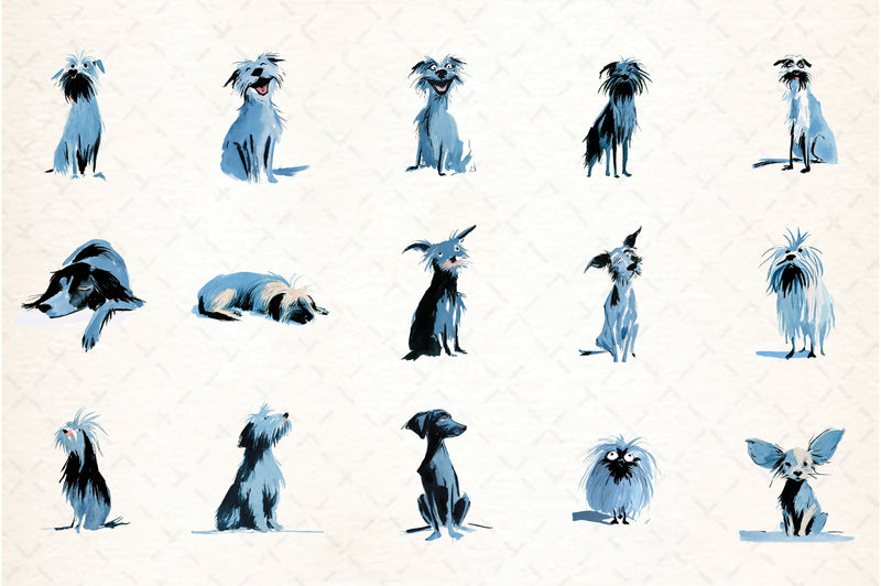 Enhance your artistic endeavors with this unique set of dog-themed clipart, perfect for both professional and personal use.