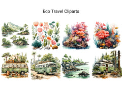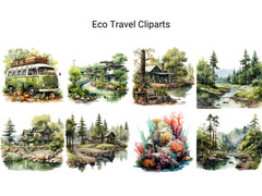 Connect with nature and sustainability through digital clip art featuring eco-friendly destinations, wildlife encounters, and green travel practices. These illustrations evoke the beauty and importance of eco travel, perfect for adding a sense of environmental awareness to your projects, whether for ecotourism guides, conservation campaigns, or nature-themed designs, inspiring viewers to explore the world responsibly and protect our planet for future generations.