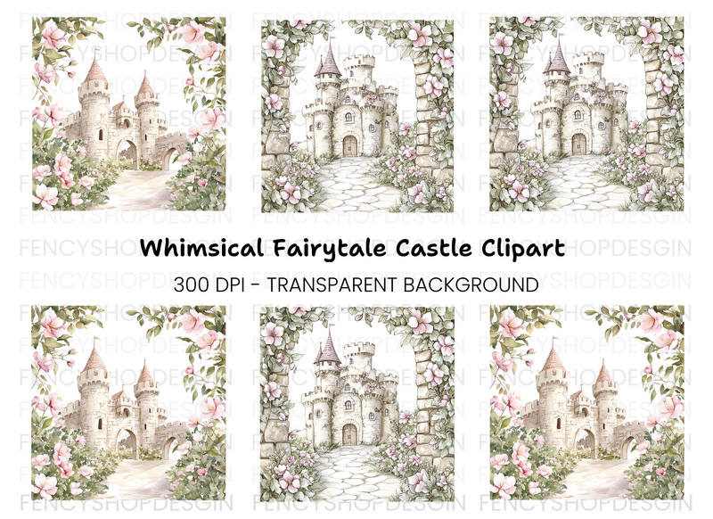 Transform your creative projects with the Enchanted Fairy Tale Castle Clipart Bundle, featuring whimsical castle designs perfect for magical invitations, enchanting nursery decor, and captivating scrapbooking adventures.