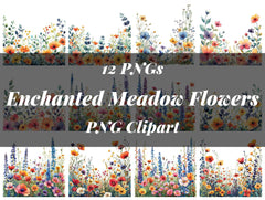 Step into magic with this Free Enchanted Meadow Watercolor Clipart set, featuring mystical floral designs, perfect for whimsical projects.