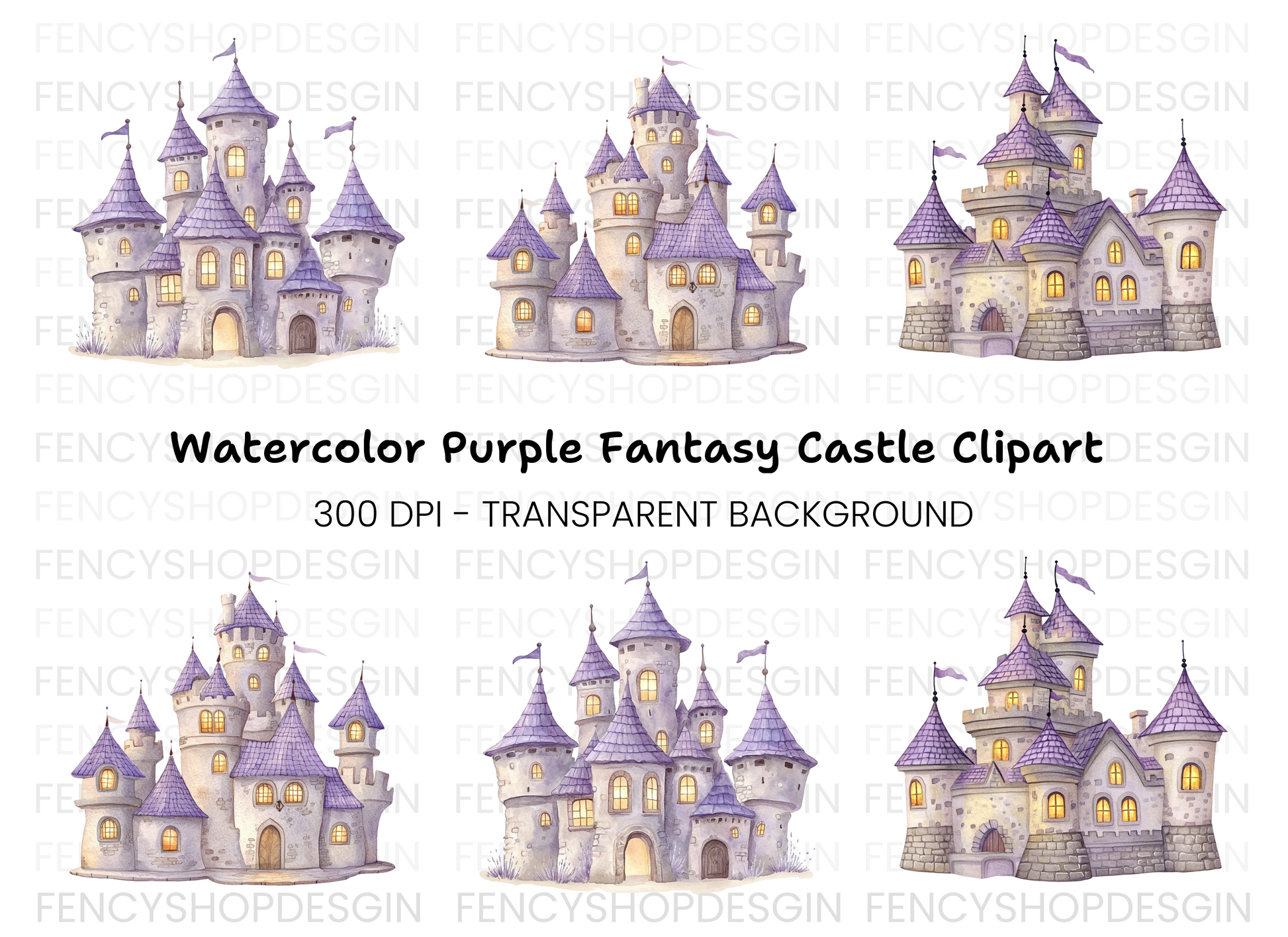 Transform your creative projects with the Enchanted Purple Castle Clipart Bundle, featuring whimsical castle designs perfect for magical invitations, enchanting scrapbooks, and fairy tale-themed crafts.