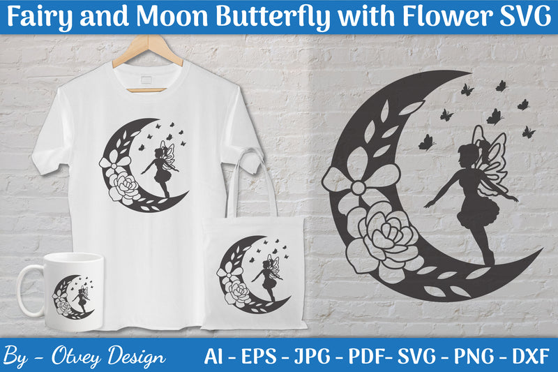 Fairy and Moon Butterfly with Flower SVG Bundle