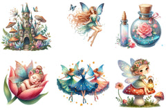 Unleash your creativity with the Fairytale Fairy Clipart Bundle, featuring enchanting fairy designs perfect for whimsical projects and magical crafts.