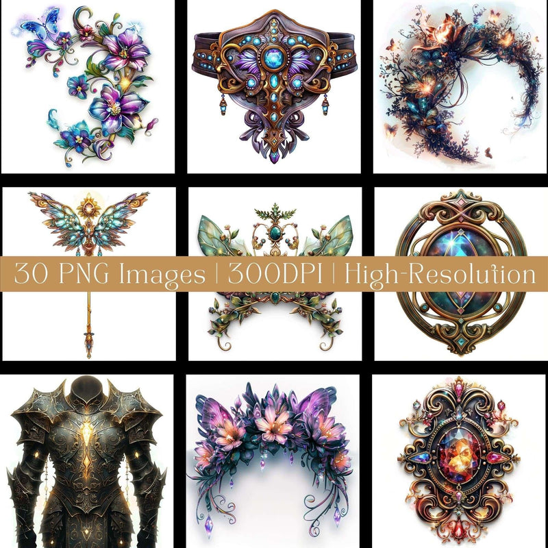 Adorn your tale with this Fantasy Accessory Clipart set, featuring magical accessory designs, perfect for enchanting crafts.