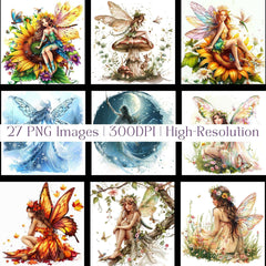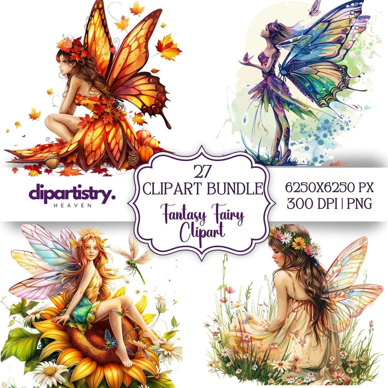 Fly with fairies using this Fantasy Fairy Clipart set, featuring delicate fairy designs, ideal for magical projects.