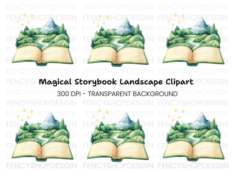 Transform your creative projects with the Fantasy Landscape Storybook Clipart Bundle, offering a whimsical collection of enchanting scenes perfect for fairy tale illustrations, magical invitations, and dreamy nursery decor.