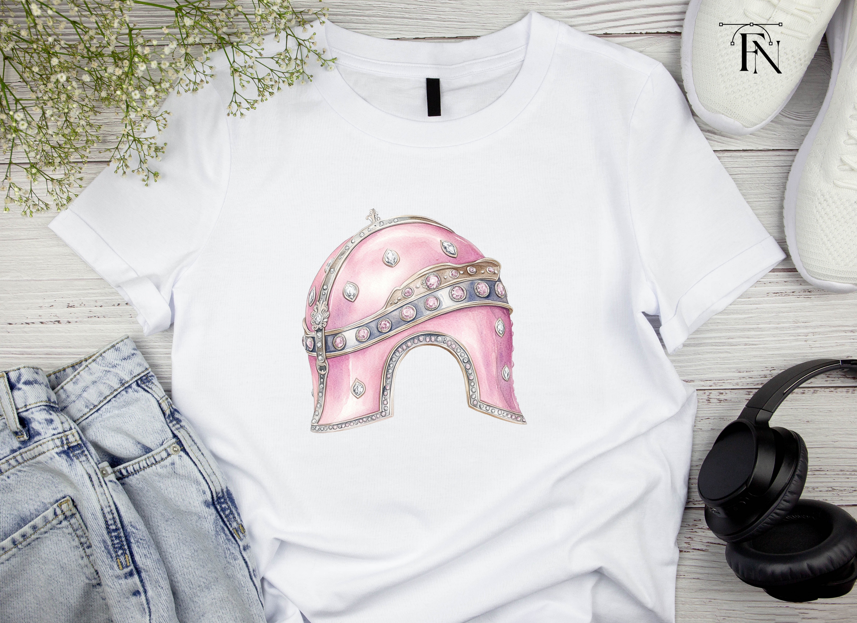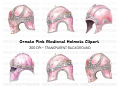 Fantasy Pink Knight Helmets Clipart Bundle