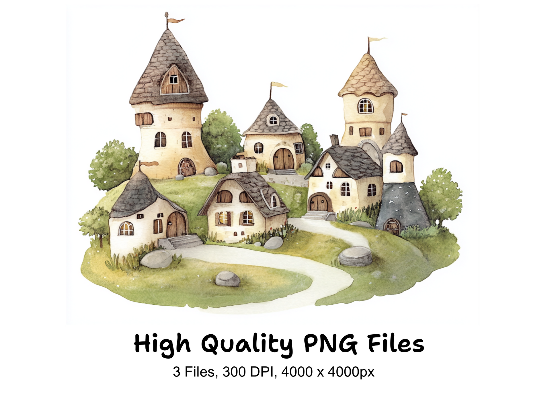 Transform your creative projects with the Fantasy Village Clipart Bundle, featuring whimsical cottages, enchanting landscapes, and charming characters, perfect for adding a touch of magic to your designs.