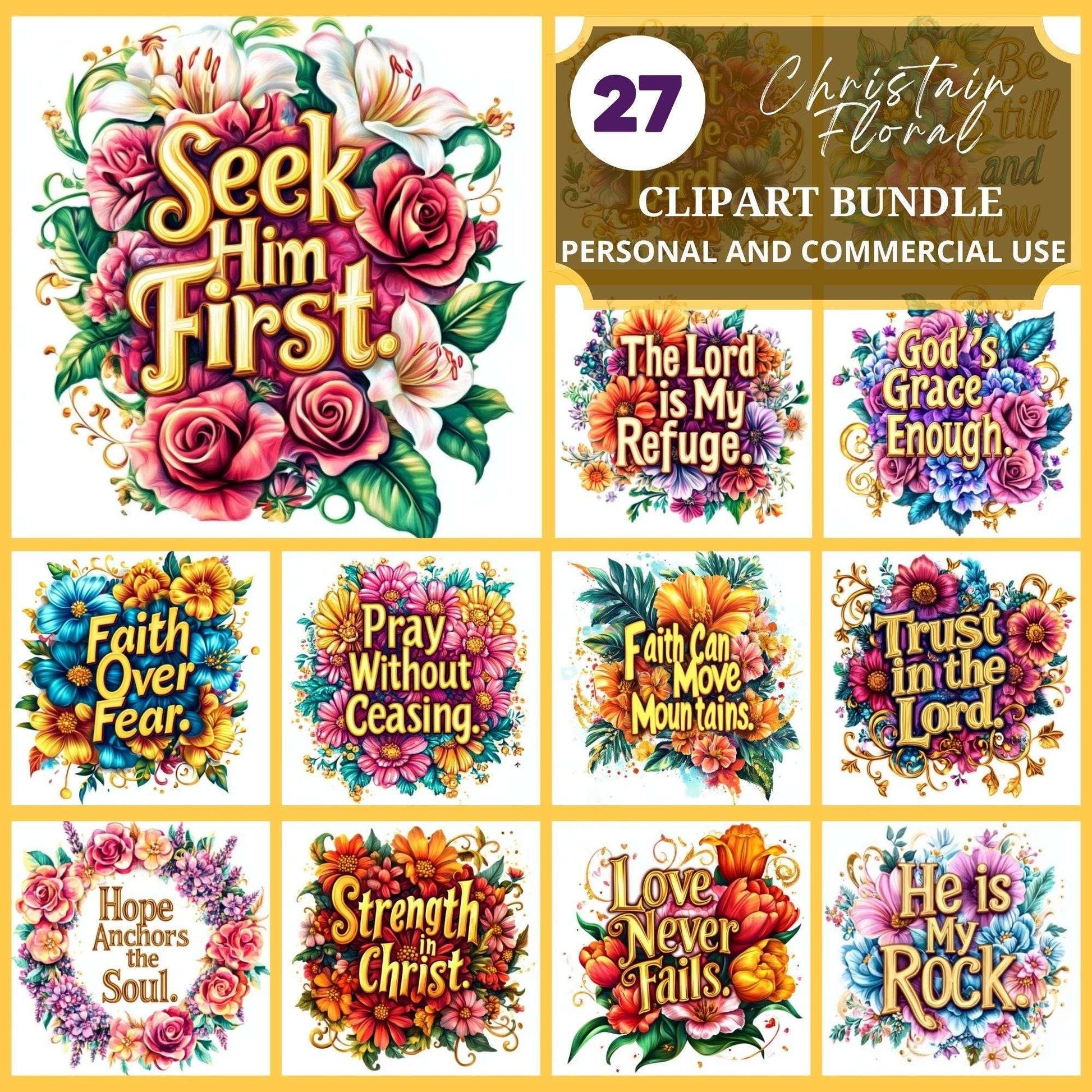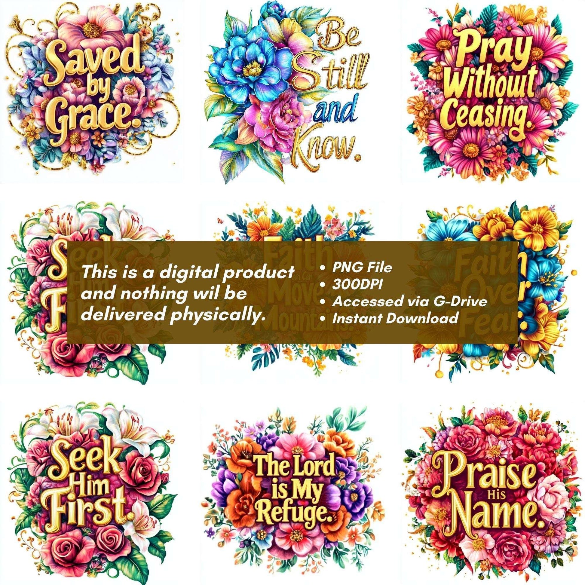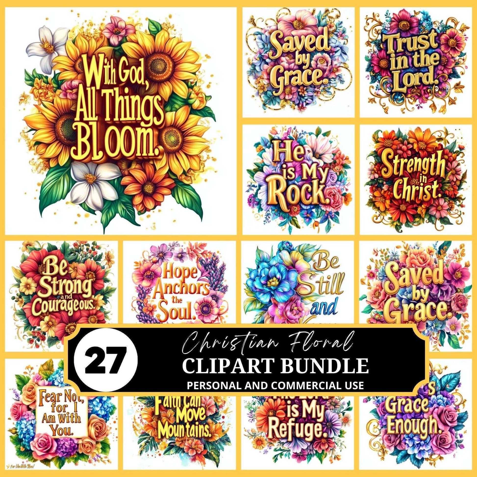Bloom in faith with this Floral Christian Clipart set, featuring floral religious designs, perfect for spiritual projects.