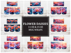 Embrace the charm of Flower Daisies digital mug wraps. With delightful daisy illustrations, these wraps bring a touch of floral whimsy to your beverage experience. Sip from these delightful mug wraps and immerse yourself in the cheerful energy of daisies, making each sip a moment of blooming joy and positivity.